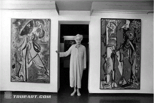 ▲ 佩姬·古根海姆与波洛克的作品在一起