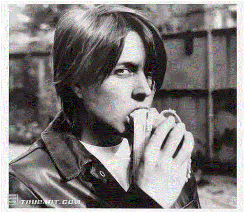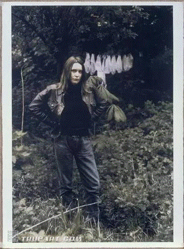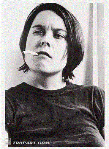 在这幅题为《吃香蕉》(Eating a Banana 1990)的作品里,镜头里的她眉头紧锁,面带怒气,不知是在仇视相机,还是相机背后的什么。长长的刘海遮住了她的半张脸,黑白分明、形象立体,给人一种动人心魄的威慑力。