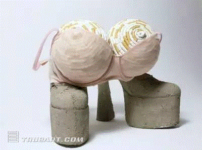 作为英国青年艺术家(YBA)的重要一员,莎拉•卢卡斯1988年参与了伦敦金匠学院同学达米恩•赫斯特(Damien Hirst)策划的具传奇色彩的群展“冰冻”(Freeze)。然而,和她声名远播的同侪们相比,她似乎并不爱抛头露面。几年之前,她甚至拒绝了透纳奖的提名。虽然卢卡斯是一个低调的人,她的作品却极尽张扬。她利用多种媒介进行创作,雕塑、摄影、装置都在创作范畴之列。她常将看似毫无关联的日常物品,诸如家具、食物、丝袜、坐便器、香烟与石膏和青铜雕塑组合在一起,做出人体肢体或器官的形态。尽管她的作品总是暗含着粗俗的黄色玩笑,却含有大量的视觉双关语,影射着性别政治、性、死亡等宏大严肃的主题。
