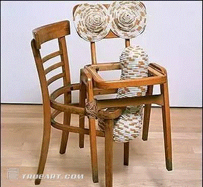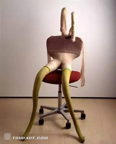 卢卡斯1997年在伦敦展出这一命名为《兔子被死球了》(Bunny Gets Snookered)系列装置。八个用连裤袜填塞的长筒袜“兔女郎”“坐”在款式各异的办公室靠椅上,它们的八种颜色正对应着8种斯诺登球色,以此戏谑地捣毁了男性对于女性身体的物化。