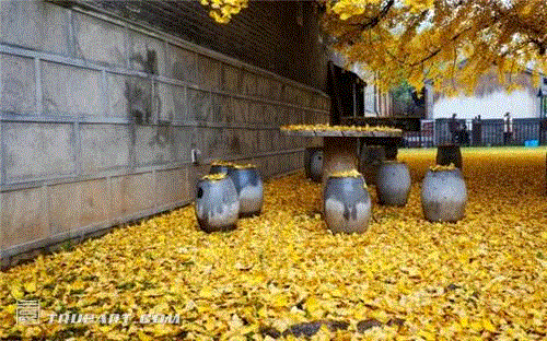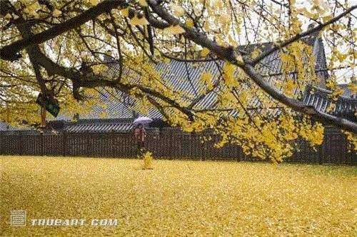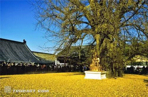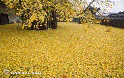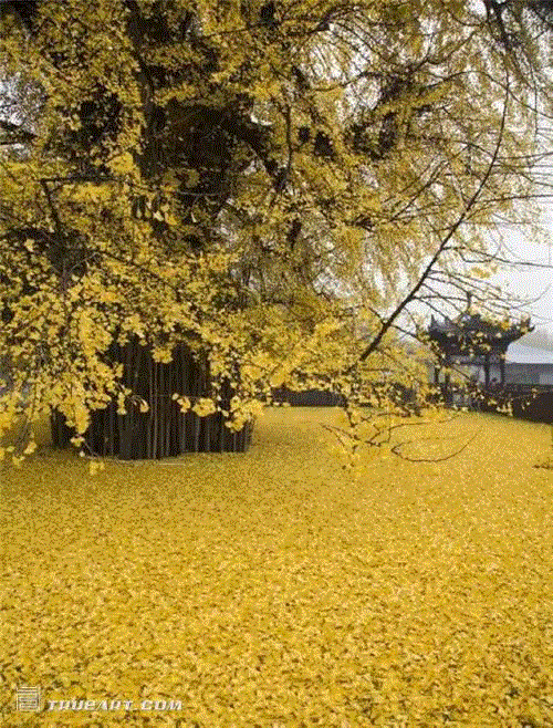 每年初冬的时候,这株古树都像身披金甲圣衣,风一过,满地金黄,甚至惊艳。