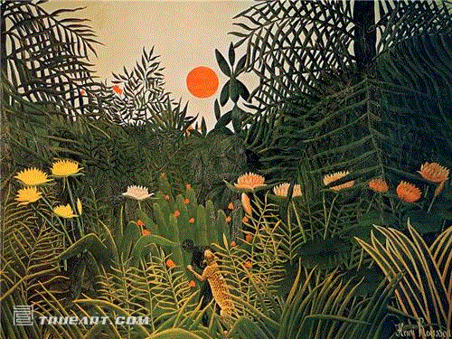 卢梭1844年出生在法国小镇拉瓦尔,之后一直过着平淡无奇的生活。二十多年来,他在巴黎做海关服务的工作,因此也得了个“海关关员”的绰号。为什么他在40岁的时候决定开始绘画生涯其实还不是很清楚,也许是为了消磨无聊的工作时间吧。