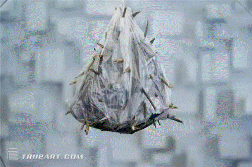 “无效”,“徒劳”或者“荒诞”,曾经是何云昌许多作品的标签。在他最被人熟悉的行为中,他是孤身一人的:与河水通过伤口交流,只身抵挡火炮爆炸的攻击,抱柱体悟诚信,达成自己视力受损的目的,将个体浇筑进水泥里,取下一根肋骨做成项链,与虎谋皮切开民主一米线,花24小时把衣服焚烧殆尽, 用30分钟将1座山自西向东移动835公里,用28天陪伴青草变绿...... ▲《草场地十世》,2012 ▲《涅槃 肉身》,2013 在何云昌的众多作品中,有一件正在进行中的行为可以为他的生活和工作状态做下注解——在《出入》(2007年11月23日-至今)中他得闲砍柴,劈下的柴火堆在草场地工作室外墙,如今一多半的正立面外墙被这件作品包裹,当然,艺术家的朋友们有理由对作品完成的期限存有疑虑,因为在需要的时候,他会取下柴火使用:冬季取暖,熏烤食物,或者春天将其焚烧成灰为他的植物施肥。 ▲《出入》,2007至今 行为艺术概念的确定者之一,艺术家Allan Kaprow曾经写到 “生活比艺术有趣的多”,“艺术和生活之间的界限应该尽量保持流动性和可能的模糊性,越流动越模糊越好。” 《出入》正是呈现艺术家介于两者之间的这种状态,贯彻着何云昌一直推崇的老庄哲学。然而《出入》不只拥有一个极力避世的表象,介于这件作品时间上的间断性和持续性,因此《出入》也有一个入世的表征。 他的许多早期作品是凭借一己之力完成的,而近期作品则是群体性的偏多,观众更多地参与在作品当中。何云昌个展中的新作《心殿》是后者之一,这件作品由三个行为现场构成。 ▲《心殿》第一场《宁静致远》 《心殿》的第一场,《宁静致远》:何云昌捅破1瓶悬挂的墨汁瓶,用宣纸做的纸巾拭掉滴落在玻璃上面的墨汁,直到1公斤墨汁滴完。 ▲《心殿》第二场《镜心云影》 第二场,《镜心云影》:何云昌推动一块悬挂的水晶立方体,当水晶体静止时, 何云昌切断挂绳,水晶砸碎玻璃台面。 ▲《心殿》第三场《怀风抱露》 最后一场,《怀风抱露》:何云昌用毛笔把清水滴洒书写在玻璃台面上,台面水迹干掉时,作品完成。 [page] 何云昌对于简洁叙事的偏爱,使得未能亲临现场的观众无法从这些描述中获取丰富的视觉想象。我想在此为这三场行为补充一些细节: 略去个展中的其余作品不谈,行为的场地是位于墨斋画廊深处的一个空间。其中两面墙被加工过的灰色纸箱层叠装饰,观众步入空间就会注意到这些大如家具包装箱,小如烟盒的装置。墙壁由具体的盒子构成,不过现在它们看起来是抽象的,在白立方的空间内暗示万丈红尘的存在。地面则由黑色玻璃划分了行为区域,平滑如镜面,投射着现场的过程,观众相对这块区域站立。每一场行为都穿插着一块矩形的玻璃作为桌面,三个行为现场都有介质和桌面发生联系——这是《心殿》中重要的线索。玻璃之下的支撑物是一块明清的旗墩以及几个汽车轮胎,在不同的现场会换成类似支撑物,传统的遗留物和现代的消耗品在同一时空相遇。与桌面呼应的装饰则为地面上的玻璃珠。 ▲由盒子构成的墙壁 ▲石墩 ▲轮胎细节 ▲《宁静致远》玻璃桌面 ▲《怀风抱露》玻璃水印 《宁静致远》中艺术家和参与者步入空间,他们身披白纱。参与者们手捧备用宣纸,艺术家扎破藏在装着荆棘的塑料袋中的墨水瓶。将近一个小时之后,空气里隐隐弥散开熟悉的墨水味道——不知何时被写入传统的文脉一经嗅觉的加工,探进记忆深处,触动文化的神经。地上渐渐增多的宣纸上呈现的是墨水渲染的随机模样。何云昌用叠成餐巾式样的宣纸拭墨,颇为玩世不恭;但同时他也尽其耐心,通过反复的擦拭,确保倾尽最后一滴墨水。 [page] ▲《宁静致远》现场 《镜心云影》中一块水晶石被吊在镜面之上50公分,杠杆原理使得这块水晶平静地停驻着。阿昌先是推动水晶石,待水晶石持续摆动后,他继而屈起一条腿膝静坐在一块基石上。每一个武装好的观众,准备好参与这一场行为,防护头盔和盾牌,同六位头戴头盔手持防护盾站在艺术家身后的参与者一起。安保人员在现场维持秩序,无防护的观看是被禁止的。然而,观众并没有被隔离的感觉。在长时间的等待过程中,参与者共同经历了这场静默,每个人都是展示的一部分。除却推动石块和剪断绳索的动作,艺术家与观众之间并无区别——如果不把观众身上的防护计算在内的话。 ▲《镜心云影》现场 在第三场开场时,更多的参与者鱼贯而入。其中两人分别端着一碗清水,一只毛笔。何云昌用毛笔蘸水在玻璃上或轻佻,或滴撒,或点皴满玻璃面之后,观众和艺术家开始了等待。直到水滴全部循环回到空气中为止,平静的玻璃面上仿若无事发生。 ▲《怀风抱露》现场 有一个疑问在观众之间升起:谁或者何物正被我们观看? 这个客体可能是艺术家,围绕艺术家的参与者,玻璃上的水珠,展厅里的空气流动,或者是每人内心的自省。从第一场的观望,到第二场的被动参与,直至第三场的放松等待。三场时长平均为两个半小时到三个小时的现场中,观众的关注点从艺术家的肉体逐渐转移到物上,再回到自身,完成了从客体到主体的转变。 不难看出,三个现场隐喻了文房四宝“笔墨纸砚”。《宁静致远》中,艺术家强调的是墨与纸。通过重复的擦拭动作,肉体仍然呈现出重要媒介作用。艺术家的态度是调皮的,恣意的。《镜心云影》中的水晶石也许指涉砚台,但我个人