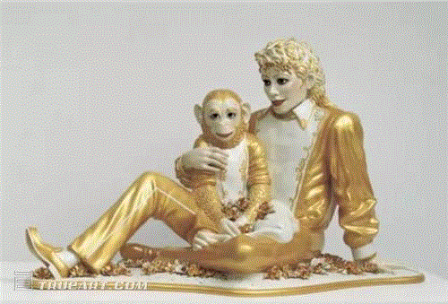 Damien Hirst: 我一直想给他办展,他的作品种类非常多,我现在还差几个没有收集全,有木头还有陶瓷做的那个,那个叫什么?迈克尔·杰克逊的那个……