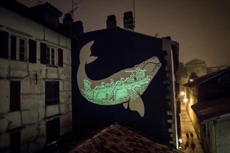 Reskate 是由两位分别来自西班牙圣巴斯蒂安的Maria Lopez(1980)和来自于巴塞罗那的 Javier de Riba(1985)视觉艺术家组成的艺术团体。他们的作品包括壁画、插画、展览以及装置,都深受古典标志绘画(sign-painting),流行文化和平面设计的影响。他们擅长结合场地特色和不同的文化背景创作夜光涂鸦作品。在白天看起来只是普通的涂鸦,到了晚上就能发挥夜光效果,揭露了隐藏在涂鸦里的秘密,令人惊喜。他们坚信,每一幅作品中涉及的美学理念、技巧以及材料的使用,都必须是经过深思熟虑的,因而作品中隐藏的信息才得以传递给人们。而每一幅作品都蕴含着某种特定的社会或文化信息,邀请人们与其互动,探索画中隐藏的真正含义。