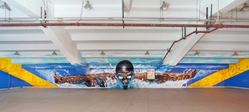 以渔网和鱼为两个创作线索,突出停车场与停车动作之间的关系,即静与动的反差。渔网和鱼的故事,不仅寓意着深圳渔村的起源,还反映着深圳人民团结一致的精神。此外,渔网的结构与C2停车场的钢筋构造相呼应。艺术团队Restake采用荧光画的手法,为人们带来日夜效果不同的壁画。白天展示着联结在一起的绳子,而当夜晚来临,被隐藏在其后的鱼便显现出来,为人们带来不一样的视觉冲击效果。