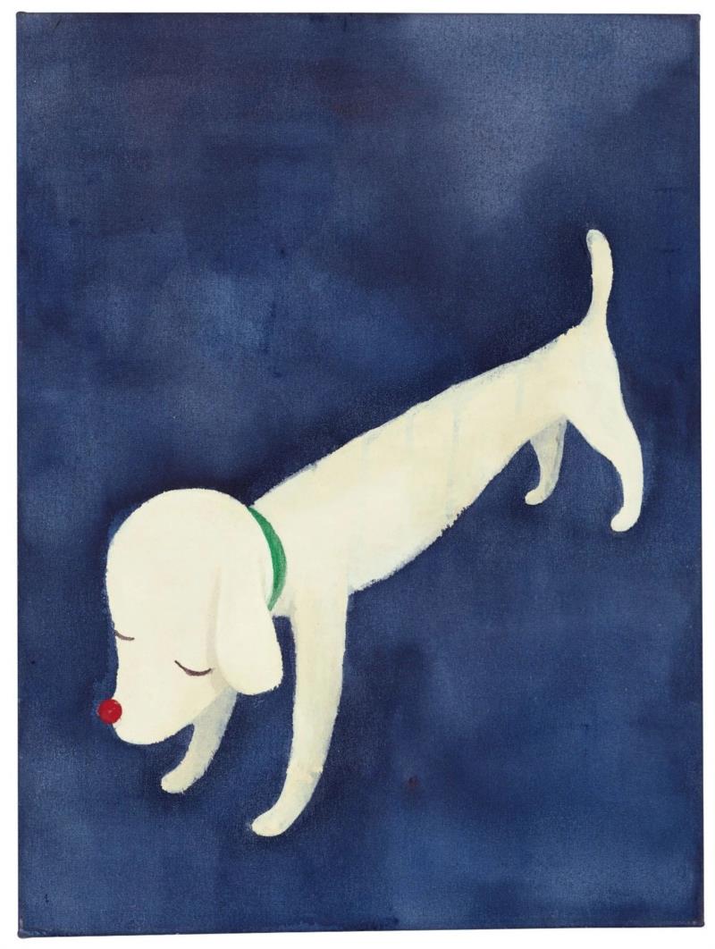 二十世纪艺术的先锋作品、日本动画、流行文化以及童年的兴趣,均塑造了奈良美智独特的表现风格和艺术形态。曾有评论者认为他没有专业艺术家的精湛绘画技艺,《Dog in the Night》就很好地反驳了这一观点。奈良美智运用极有限的单系色彩和重叠的用色,将整体图像凝聚在一起,巧妙平衡的构图更使本作呈现深特的深度。作品中的白狗与深蓝色的背景形成强烈对比,白狗是艺术家叙事语汇中常见的角色,他曾说:“小狗温驯服从的样子,让我想起童年。“