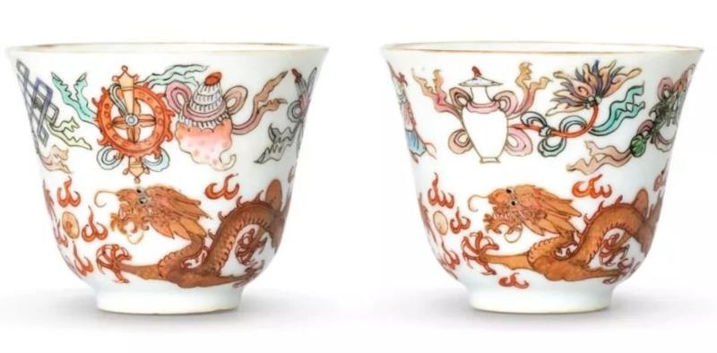 清光绪粉彩八吉祥龙纹杯一对