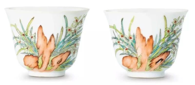 清光绪粉彩兰花纹杯一对《大清光绪年制》款