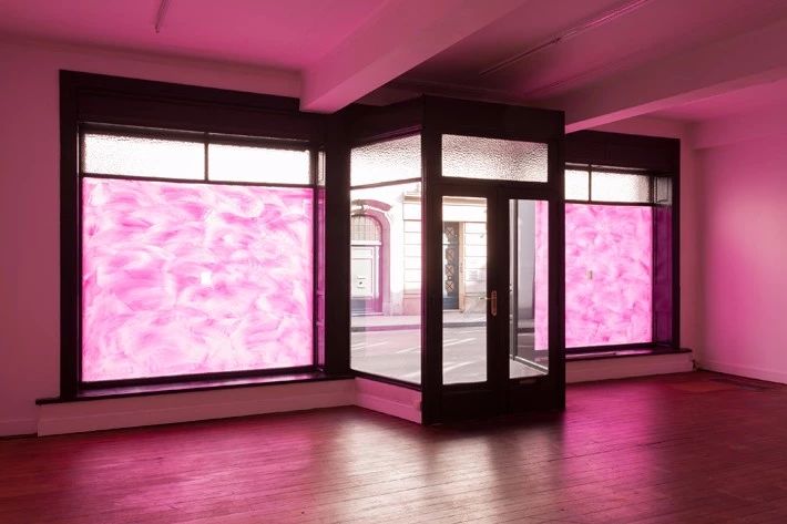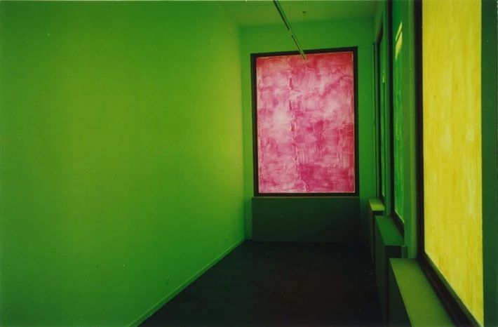 Pieter Vermeersch(b.1973)比利时艺术家,生活和工作于布鲁塞尔和都灵。运用单色美学概念,在画布或墙上精准描绘特定色彩的渐变色调。对绘画的艺术研究超越了画布的限制,作品通常包括大量的空间干预,从展览空间到建筑场地,不断颠覆绘画的领土。除了沉浸式绘画装置和渐变壁画之外,他的作品还包括一系列他自己称之为“零度绘画”的作品。视频中是2019年艺术家在Perrotin New York的展览。
