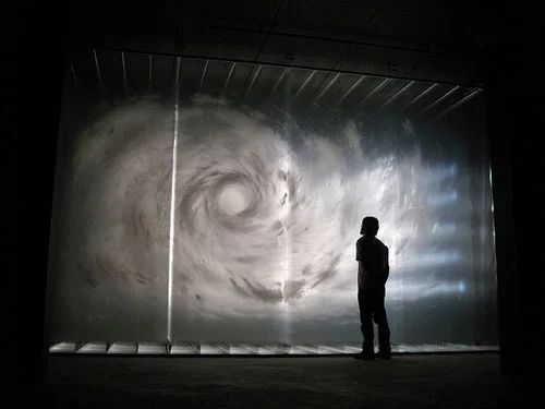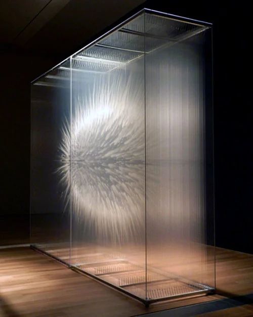《力量之轴》兼有二维空间与三维空间的属性,就“似一个科学的怪物,幽室中的建筑空间把自然的力量被俘获,隔离,物件化”。让人联想到暴风眼等自然现象,而当人走进端详的时候,引人入胜、井然有序的内部构造则以另一种方式呈现出来,极大地挑战了观众对于传统空间观念的理解。