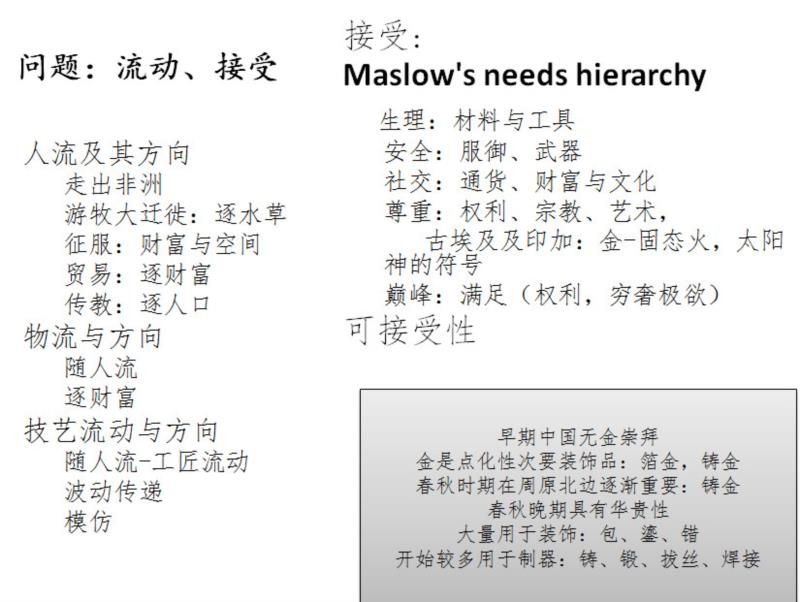 对于不同材料,如刚才贾妍博士讨论的青金石,在西方世界具有魅力,从阿富汗向西到两河流域,再折而到北非,后来远流到欧洲,他们都非常喜欢,为什么?黄金也是,在那里人见人爱,莎士比亚戏剧《雅典的泰门》对此有入骨的描述。相反,为什么早期中国黄金很少?有关古代物质,既涉及到审美和价值认同,当然和资源与技术也有密切的关系。