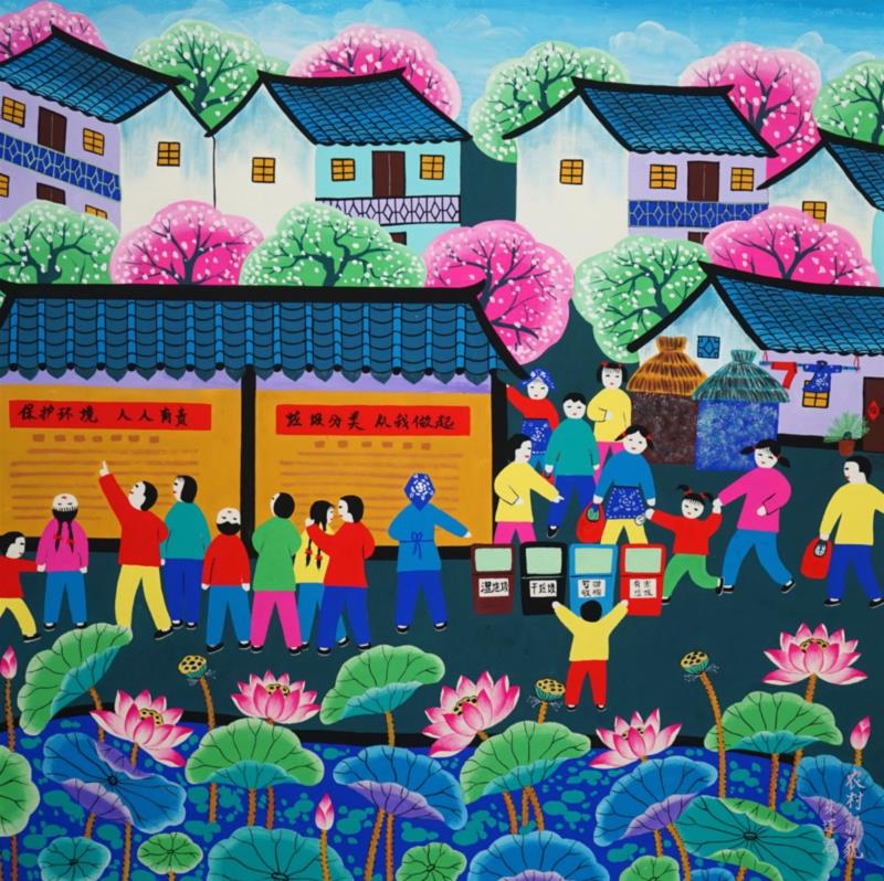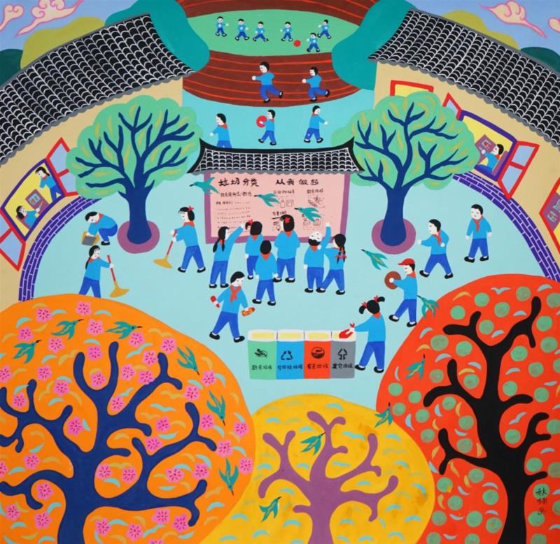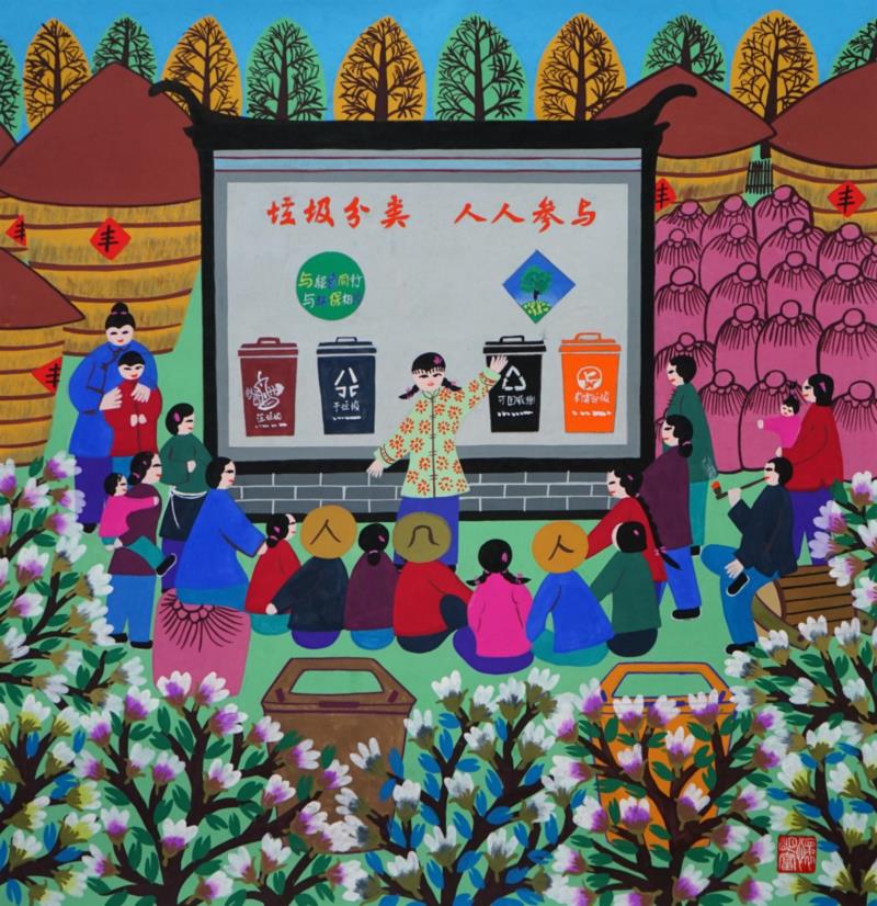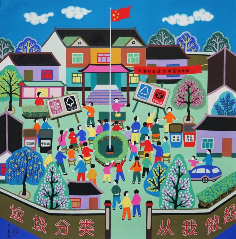 《垃圾分类 从我做起》纸本设色 60×60cm 2019年