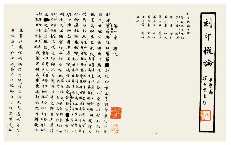 《刻印概论》是傅抱石先生撰写、手订的一部印学理论专著。全书以工整精湛的小楷誊抄,所刊印例,亦以朱砂印泥精心钤拓,足见傅抱石先生治学之严谨。图为《刻印概论》的部分章节。