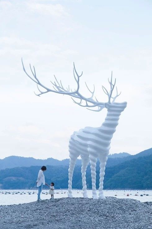 雕像所在的地方叫“牡鹿半岛”,在日语中代表“雄鹿”的意思,其实对于这个岛来说,鹿也是像神兽一样的地位。整个雕塑尺寸和材质,尺寸非常大,纯白色的人工材质跟周围的自然环境凸显出来,形成强烈的对比,因此最终出来的东西,让当地人感觉非常具有象征意义。