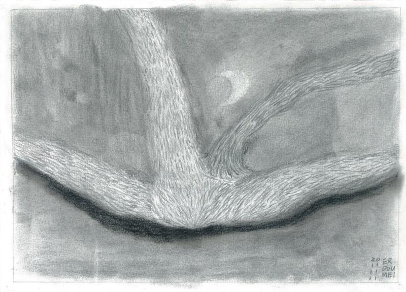 “月亮之子 Moon Child”系列,纸本素描(炭笔,彩铅),13×19 cm,2011