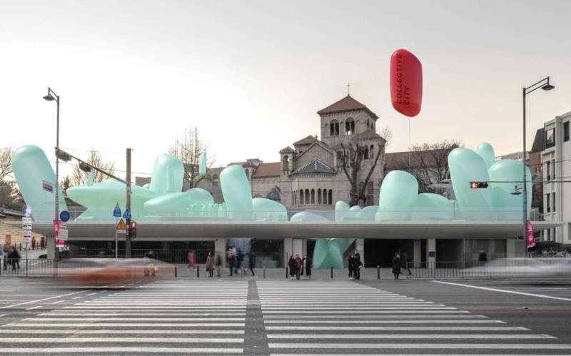 莫斯科设计团队 SKNYPL 最近为韩国首尔市政厅建造一个充气的装置艺术飘浮花园,除了作为都市改造的前驱之外,更创造新的独特屋顶体验和地标。