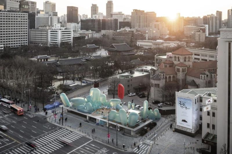 这是韩国政府推行的 New Korean Garden 竞图活动,目的在于为首尔市民和游客提供现代化的活动空间。该项目采用 ETFE 材料制成,充满空气和轻盈的质感,也传达了「放松场域」的基本精神。