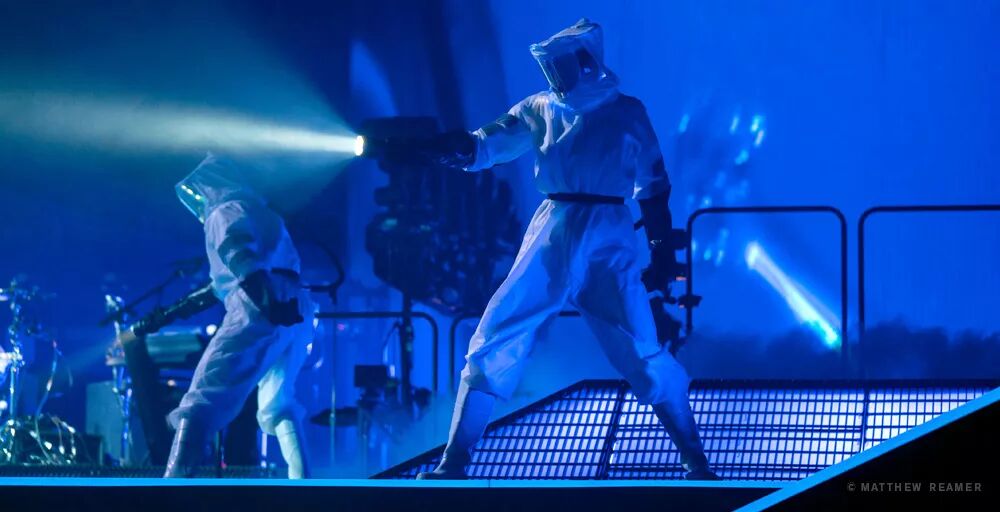 未来、科幻/幻想成为演唱会的主题,Muse为观众展现了一个复古的未来世界,很多80年代的科幻电影元素在这里展现,霓虹灯、机器人,身着隔离服的杂技演员,23世纪的警察......华丽的科幻幻想家们将观众扔在奢侈的反乌托邦体育场嬉戏。