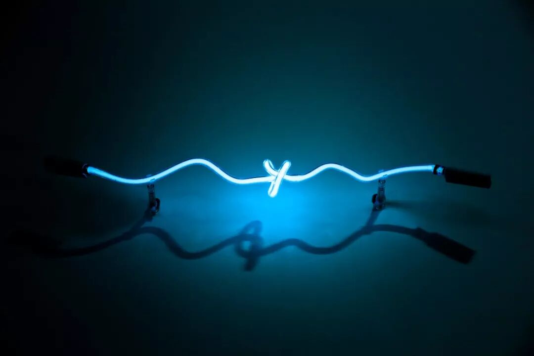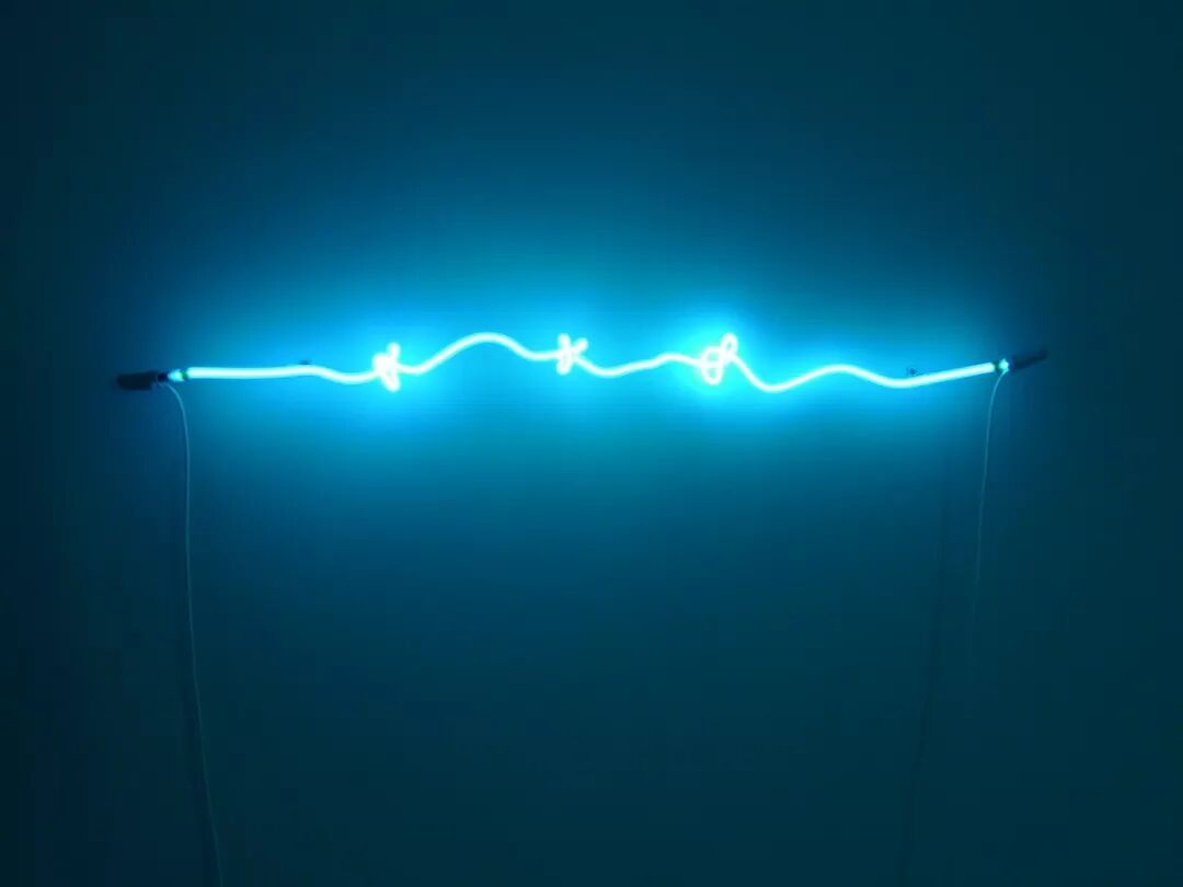 周子正 Zhou Zizheng,不定性的单个幽蓝色绳结 Uncertainty of a Single Blue Knot,2019,霓虹灯Neon light,尺寸可变 Dimension variable