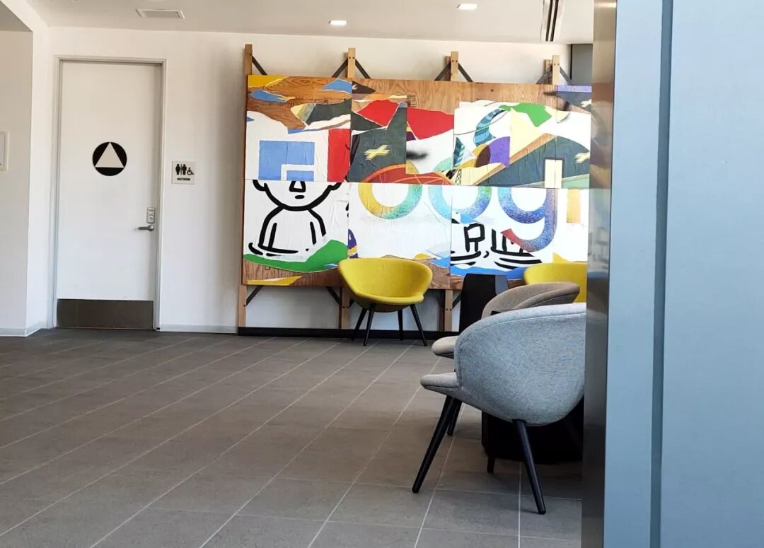 蒋奇谷:谷歌是21年前两位美国斯坦福大学的学生在宿舍里研发搜索引擎时建立的,但从一开始谷歌就非常的“艺术”。我记得当时它的标志设计根据6个英文字母不断的变化,经常换新,后来还发展成动画,点击进入可以看到历史和文艺科技等介绍的链接,有趣生动,于不经意处传播了知识文化。在谷歌公司里随时可以见到艺术品,在展览的办公楼里我看见好几幅风格类似雷蒙-汉斯(Raymond Hains)广告撕画作品,还有用老旧显示器和电脑接线捆扎成的装置作品等。这次展览是谷歌/爱艺术(goole/goart)项目的一个画展,项目由谷歌员工发起,定期邀请艺术家来公司做展览,是他们对艺术的热爱和支持。这已成为一种企业文化。我很想知道国内的科技公司如百度等有类似的艺术项目?