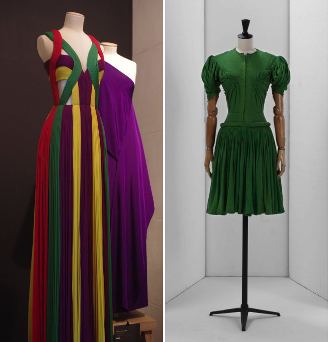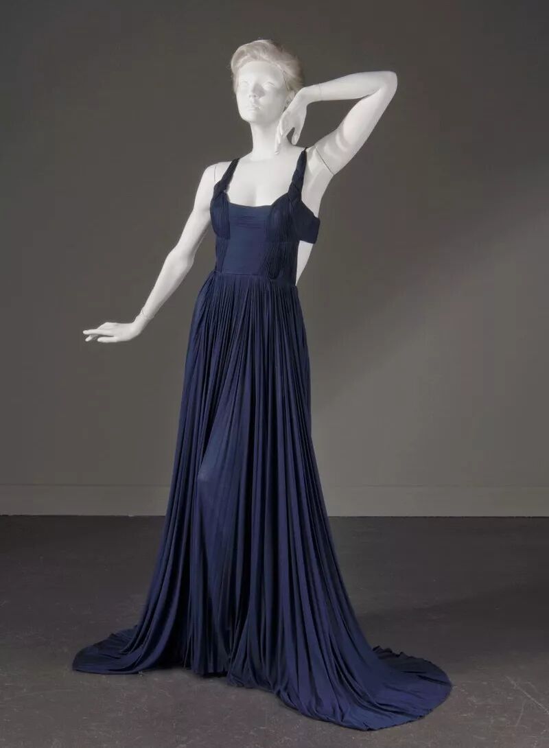 而以布料延展、堆叠出宛若雕塑线条的刻凿痕迹,更是两种艺术领域结合所孕育的结晶,实现在Madame Grès以古罗马和希腊风格为创作灵感的垂坠服饰中,以亲密贴合身体的「褶裥」和如瀑布般垂挂肩上的「披肩」,形塑出Madame Grès心中完美女人的样貌。