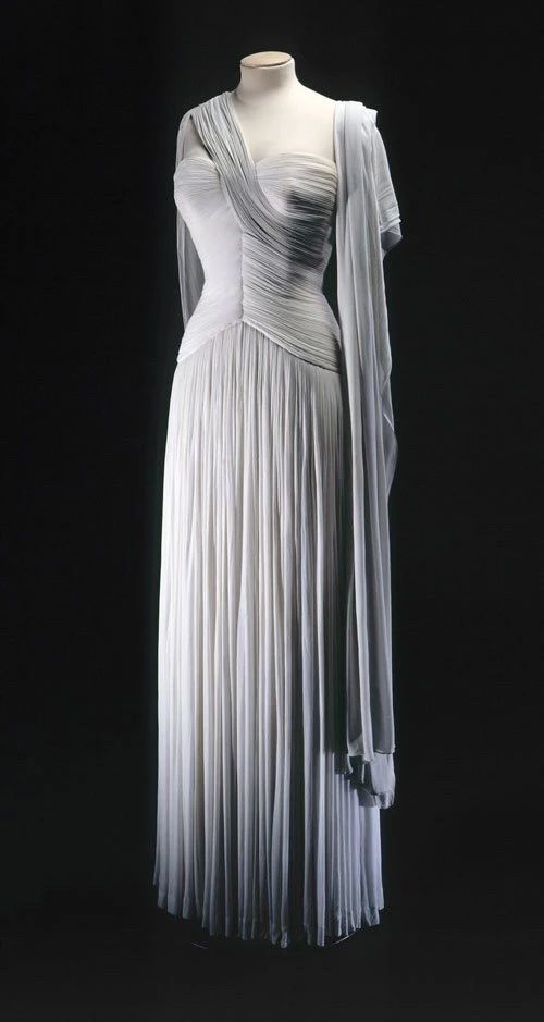 Madame Grès认为布料拥有自己的个性与灵魂,与其命令它们该做什么,不如尊重其自主性,让其依照自由意愿伸展,在人体上活出最自然的生命型态。