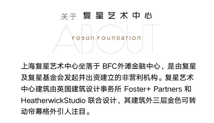 复星基金会ANNEX项目空间,复星艺术中心,以及即将于BFC外滩金融中心落成的众多公共艺术项目将共同完成BFC外滩金融中心作为“公共艺术园区”的重要一环,为BFC外滩金融中心、外滩、上海、全国乃至世界观众提供欣赏和理解当代艺术的直观经验,实现公共空间即是艺术教育的公益愿景。
