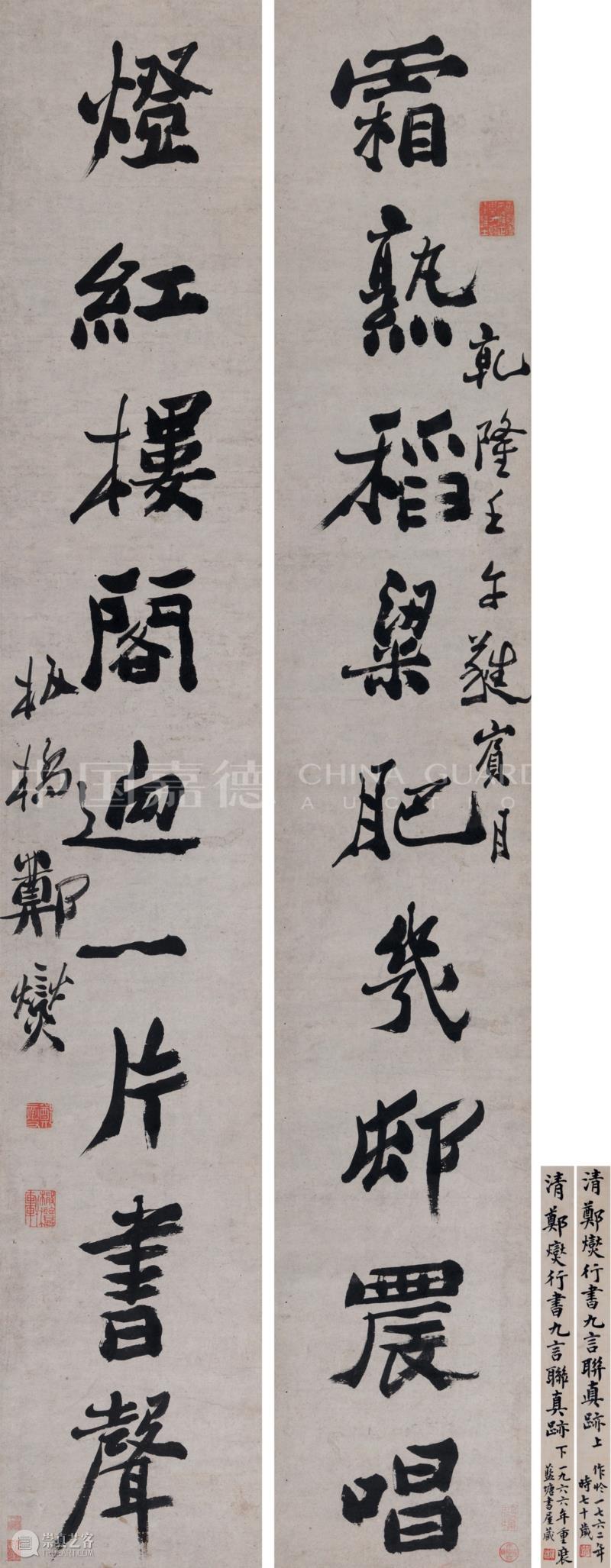 本季秋拍中,有二件郑燮作品,皆成于乾隆二十七年(1726年),兹借此二作以窥其晚岁之风貌。郑板桥(1693-1766)原名郑燮,字克柔,号理庵,又号板桥,人称板桥先生,江苏兴化人,祖籍苏州。康熙秀才,雍正十年(1732)举人,乾隆元年(1736年)进士。官山东范县、潍县县令,政绩显著,后客居扬州,以卖画为生,为“扬州八怪”重要代表人物。