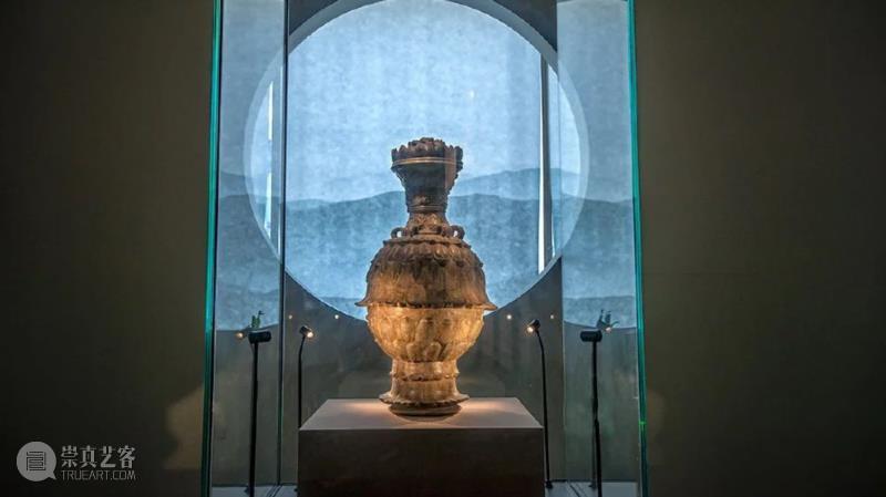镇馆之宝之一的青瓷莲花尊,被安放在海市蜃楼般的布景之中。