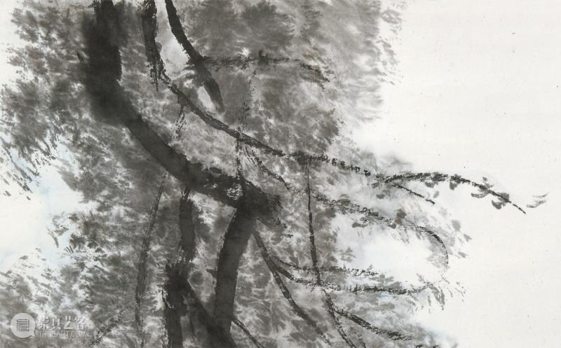 时至1984年,李可染的牧牛题材已然非常成熟,本幅湿笔描绘的水牛筋骨、质感表现生动,笔墨润泽,柳阴先以花青打底,之后再以繁密的点厾,柳枝的灵动与水牛的厚重构成对比,气息醇厚,意趣盎然。