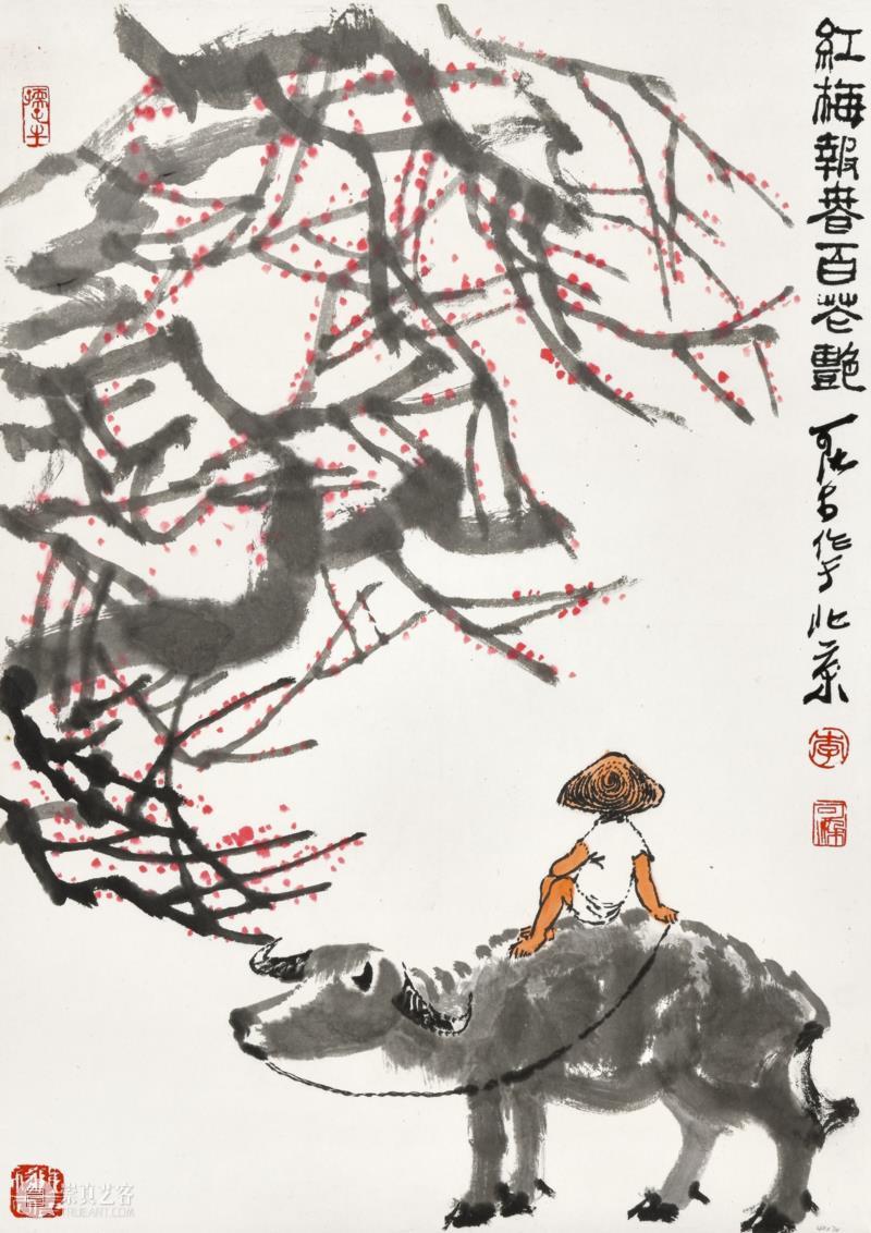 题识:红梅报春百花艳。可染作于北京。钤印:李、可染、孺子牛、陈言务去
