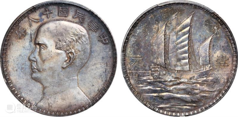 民国十八年意大利“A.MOTTI.INC.”签字版孙中山像三帆船壹元样币(PCGS SP62)