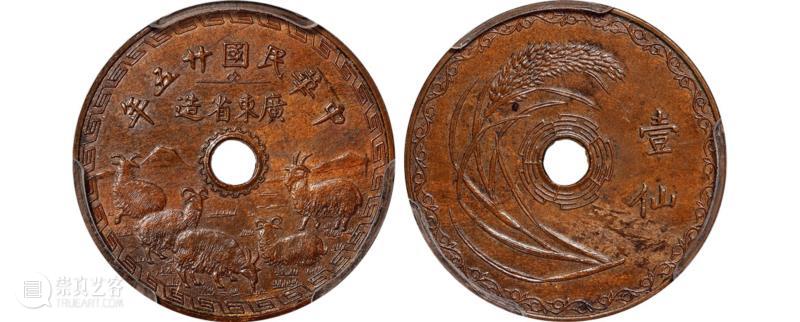 民国二十五年广东省造五羊图壹仙铜币样币(PCGS SP63BN)