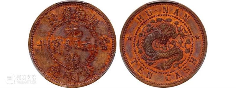 1902年湖南省造光绪元宝当十黄铜元红铜试铸样币(PCGS SP63RB)