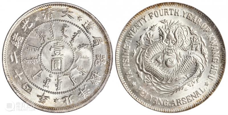1898年戊戌江南省造光绪元宝长刺版“珍珠龙”库平七钱二分银币(PCGS MS63+)