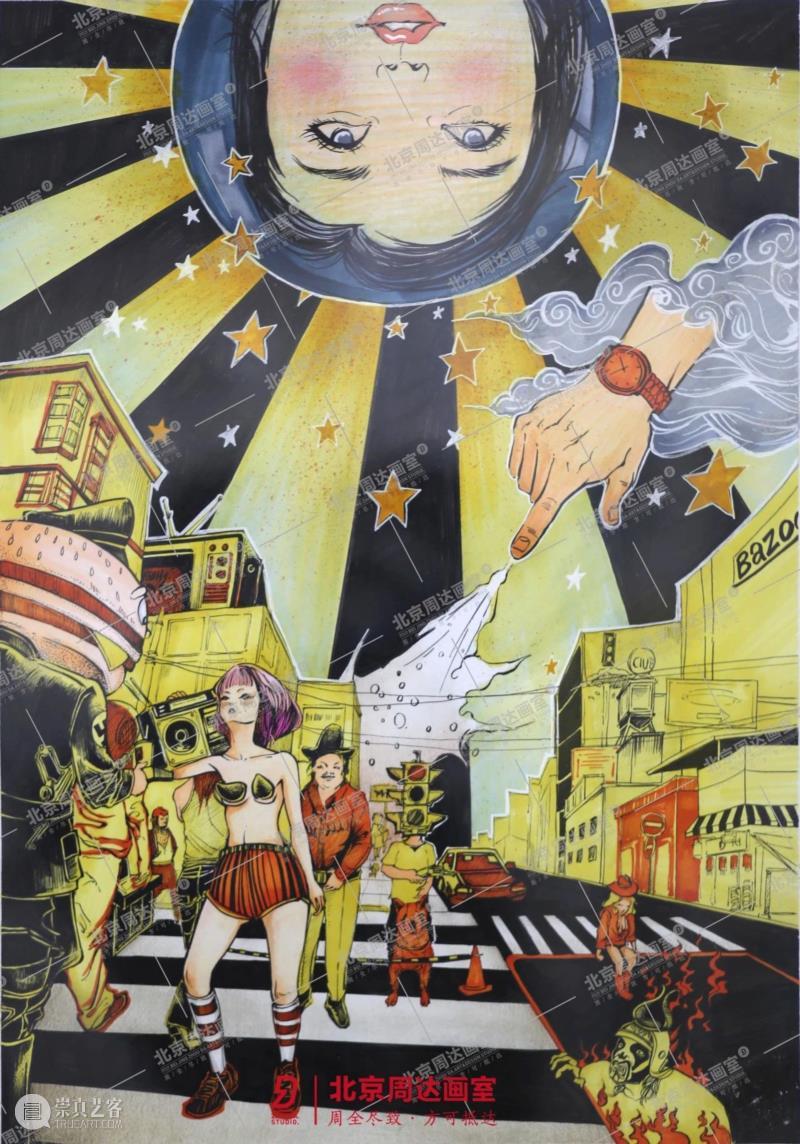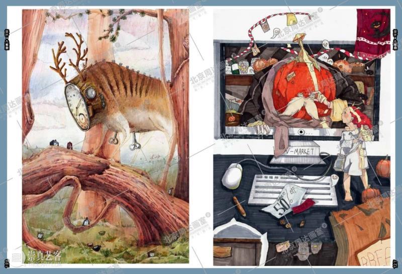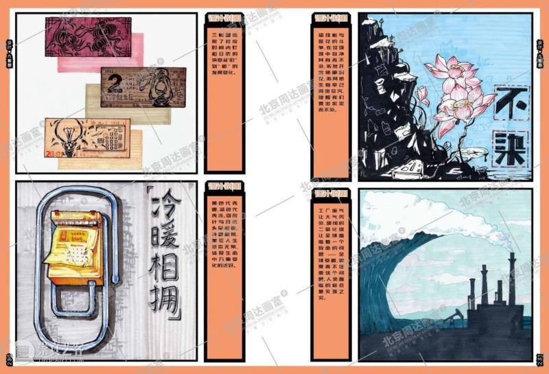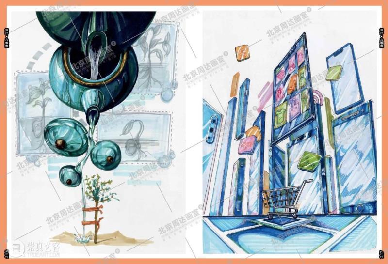 题目将艺术与设计的界限打破,直观考察了考生的现场反应以及对社会热点的感知和洞察能力,引导考生进入“内外求索”的过程体验。设计学科的考试要求学生采用画稿的一半完成作品正稿,另一半用方案草稿的方式诠释作品方案的构思内容。这一要求强调了思维推导过程的重要性以及作品本身的逻辑性,考生需要对创作的思想内容进行系统性、层级化整理和多维度想象,一定程度地避免了套题的可能性,强调了考生的主观思考能力。