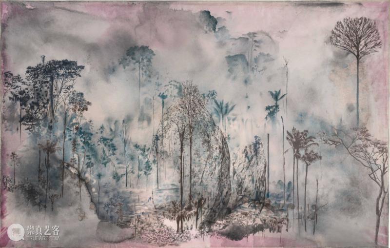 此次展览展出的新绘画作品来自两个相关系列——《Les dessouvenus》(2013 -)和《The Great Atlas of Disorientation》(2019 -)——它们被安装在一个金属电枢上,而电枢本身就有如贯穿空间的线性绘图。为了制作《Les dessouvenus》,杜薇首先将大尺幅的彩纸投入漂白剂中,让纸面形成不可预测的、甚至是腐蚀性的边界,从而为她用铅笔所画的复杂的“环境戏剧”(environmental dramas)提供一个松散的结构。