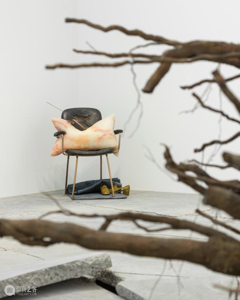 塔蒂安娜·杜薇(Tatiana Trouvé)的个展「On the Eve of Never Leaving」已于2019年11月1日在高古轩比佛利山庄开幕。在塔蒂安娜·杜薇的大型绘画、雕塑以及特定场域的装置作品中,杜薇评估了记忆和材料之间的关系,将时间的无限流动与日久弥新的日常物体进行对比。她将自然生态系统和人工生态系统的碎片相互融合,创造了一个令人感到似曾相识的场所,在此,森林、街道、工作室和梦境都彼此交汇共生。Installation view with Tatiana Trouvé, The Guardian (2019) Artwork © Tatiana Trouvé. Photo: Fredrik Nilsen Studio, Courtesy Gagosian.展览标题译自诗人阿巴罗·德卡波斯(Álvarode Campos 是葡萄牙诗人费尔南德·佩索阿的笔名之一)所作的一首诗歌。德卡波斯充满忧郁的作品常常涉及时间和虚无的概念;它们是对存在与虚无的赞美诗。杜薇调和了不同旅程中的回路(无论是身体上的还是精神上的),它们都能以自己的方式循环往复,从视觉上瓦解过去和未来,以神秘的物质形式呼应佩索阿的语言学悖论。