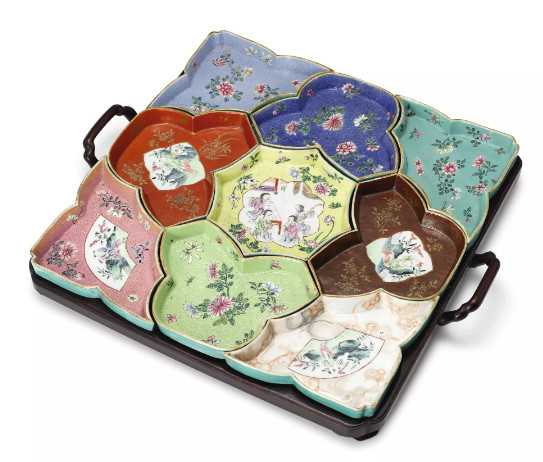 清晚期 铜胎画珐琅云龙纹攒盘 (一套)