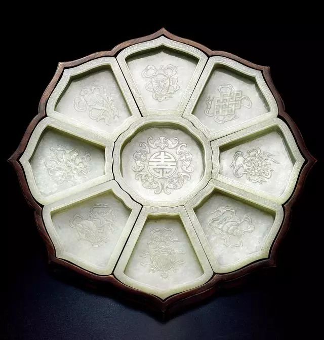 清18世纪 青玉八吉祥福寿纹攒盘 (一套)
