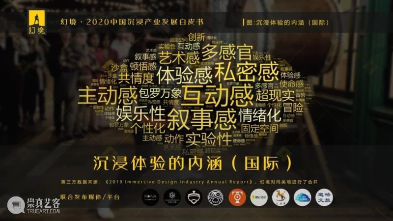 根据《2019 Immersive Design Industry Annual Report》在全球范围(样本主要集中在美国)的调研结果,海外沉浸体验的受众认为沉浸体验应当具有:互动感、叙事感、私密感。(其余高频词详见【图:沉浸体验的内涵(国际)】)