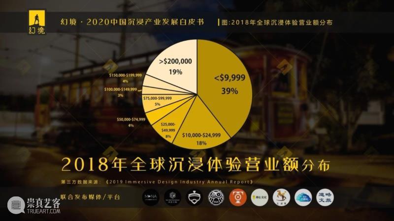 特别是,如以$500亿的全球总产值来理解沉浸产业规模,将带来产业成熟的假象,从而导致投资开发的严重误判。为此,幻境提出全新的全球沉浸产业总产值的估算方式:2018年全球头部项目(公开营收数据)总收入累加+腰部尾部项目以“2018年全球沉浸体验年营业额分布”和“2019年全球沉浸体验数量”加权求和。经过计算,2019年全球沉浸产业的总产值为$51.9亿。