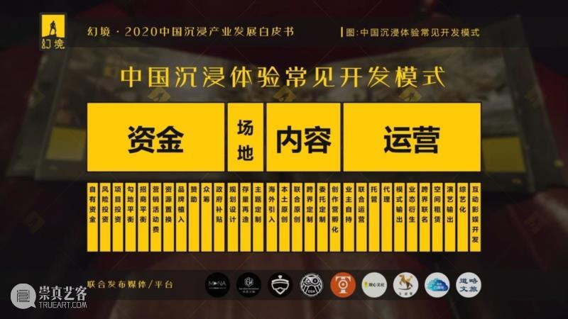 资金:自有资金、风险投资、项目投资、勾地平衡、招商平衡、营销活动费、资源置换、品牌植入、赞助、众筹、政府补贴; 场地:规划设计、存量再造、主题定制; 内容:海外引入、本土原创、联合原创、跨界定制、委托定制、创作营孵化; 运营:业主自持、联合运营、托管、代理、模式输出、业态衍生、跨界联名、空间租赁、演艺输出、综艺化、互动影娱开发。