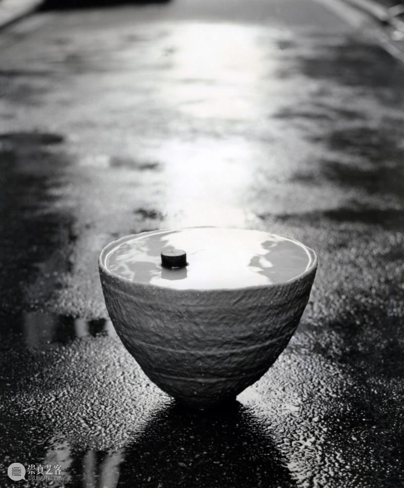 我一直想用陶瓷材质来做一件作品,陶瓷制作的话在不同的地区有不同的品牌。当做好了这个碗之后就想着说放一些水,放了一些水又觉得还是少了一些什么,就放了树枝,看起来就像是竖起来的茶叶梗。整个作品就是很偶发性的,就像一个小孩子一样,会想着在水面上放一些树叶什么的,这个树枝就是普通的捡回来的树枝然后掏空,下面放一些重的东西填充就可以让它立起来。这是75年的作品,这个系列就是用不同形状的陶瓷来做的。