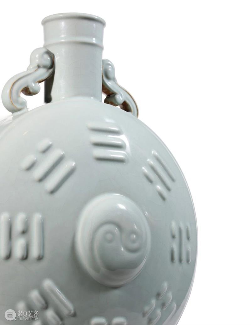 腹部浑圆,侧面装饰四系,均以墨色点染,殊为少见;腹部饰太极阴阳图,四周凸起八卦纹,为中国传统文化最重要的基本图形元素,涵盖宇宙阴阳,四方八荒,后成为道教最常用的宗教符号和象征。故而,在雍正御瓷的制作之中,带有道家符文的器物往往为雍正皇帝亲自使用或陈设于君王左右之物,十分珍贵。恢宏大气,古雅端庄,为雍正御窑单色釉珍罕大器,存世极为少见。
