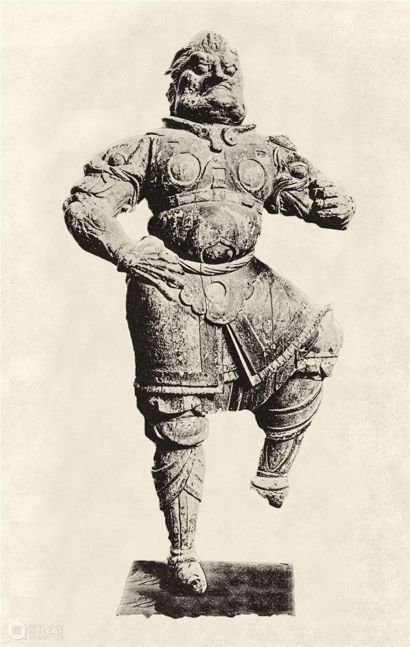 天王(四大天王)和力士(门神)通常都是单独出现的,但不像佛或菩萨那样平静。他们的姿势通常高度紧张:臀部扭动,双足踏地,手持兵器,面目狰狞,十分愤怒、暴躁,全身颤抖不已。这些人物富有鲜明的个性特征,但仍要遵循特定的造型。他们保护着寺庙免受邪恶的影响,展示出超乎寻常的惊人力量,如果除去他们身上的衣物,完全呈现出身上、胳膊上和腿上的肌肉,我们便会发现,他们的造型极为夸张。全身所有的肌肉同时拉伸到极致,在真人身上,这种情况绝对不可能发生。他们就像大力神般体格强健,动作迅猛有力。如果我们由此以为中国的雕塑家对人体感兴趣,那就大错特错了。他们只是宗教象征,灵感来源同佛或菩萨一样,是超越人类的、非人格化的。他们代表着运动的精神力量,而非完全处于静止或和谐状态中的精神力量。