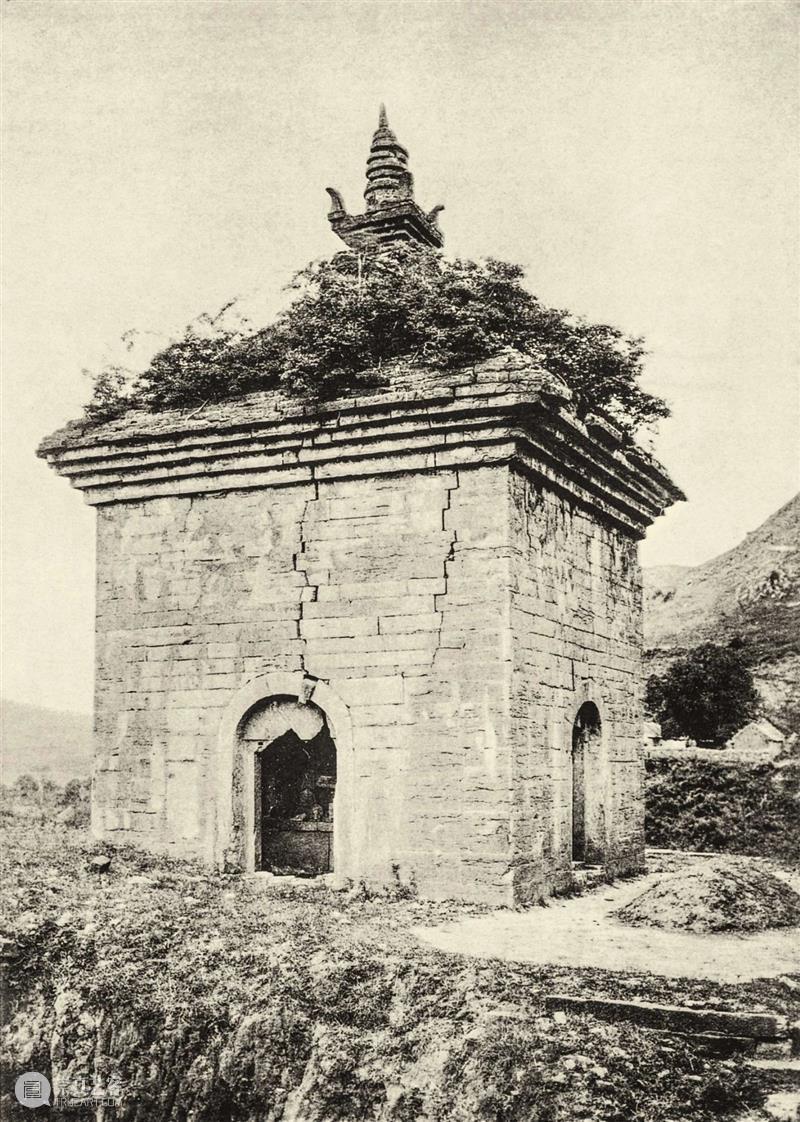 位于济南府东南约30 英里处。这座寺庙确切的修建年代不详,但是塔内最初的造像风格属于北齐时期,因此这座塔的年代不会晚于北齐。显然,门框和造像也属于同一时期。塔身为方形,宽约27英尺。墙体由砂岩石板砌成,石板上刻着常见于汉砖的简单线条。塔身四面各有一拱门,门内顶端石板上刻着饰有帷幔的华盖。五层石砌叠涩出檐,顶上有一小塔。整体比例绝佳。令人印象尤为深刻的是,这座塔坐落在开阔的平台上,可以俯瞰下方的小峡谷。这是我所知的中国最古老的石质建筑。