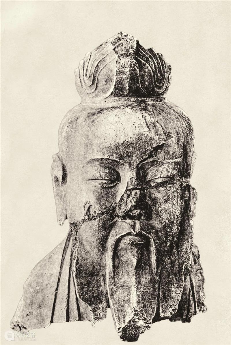 高发髻,山羊胡。眼睛和嘴巴雕刻得异常精致,鼻子部分残损。