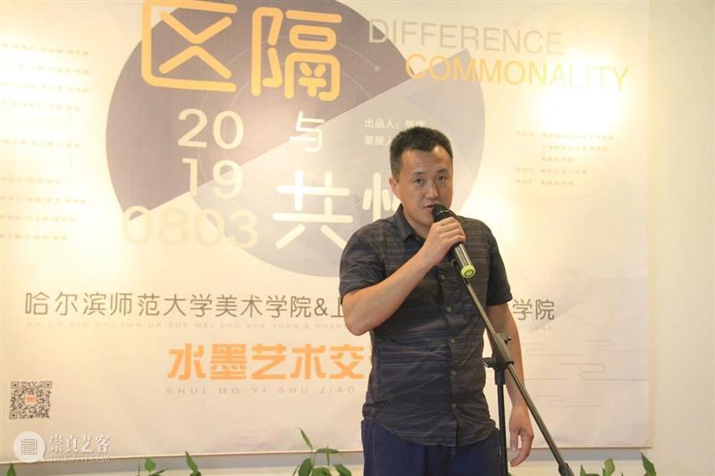 哈尔滨师范大学教师代表,哈师大美术学院中国画系主任刘钻老师对哈尔滨及上海两座城市的“区隔”与“共性”分别做了历史回顾。他说:“今日以绘画的形式作为交流的媒介,也是一场思想上的碰撞。我作为代表画家及哈师大美术学院中国画系主任,也学习到了很多。”他认为,绘画只有融入生活,才能形成自我的风格。最后,刘钻老师对本次展览的每一位参与者表示了感谢,并祝愿本次展览取得圆满成功。